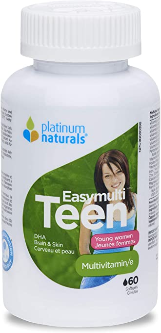 Platinum Naturals - Easymulti Teen for Young Women | DHA | Brain & Skin - 60 Softgels
